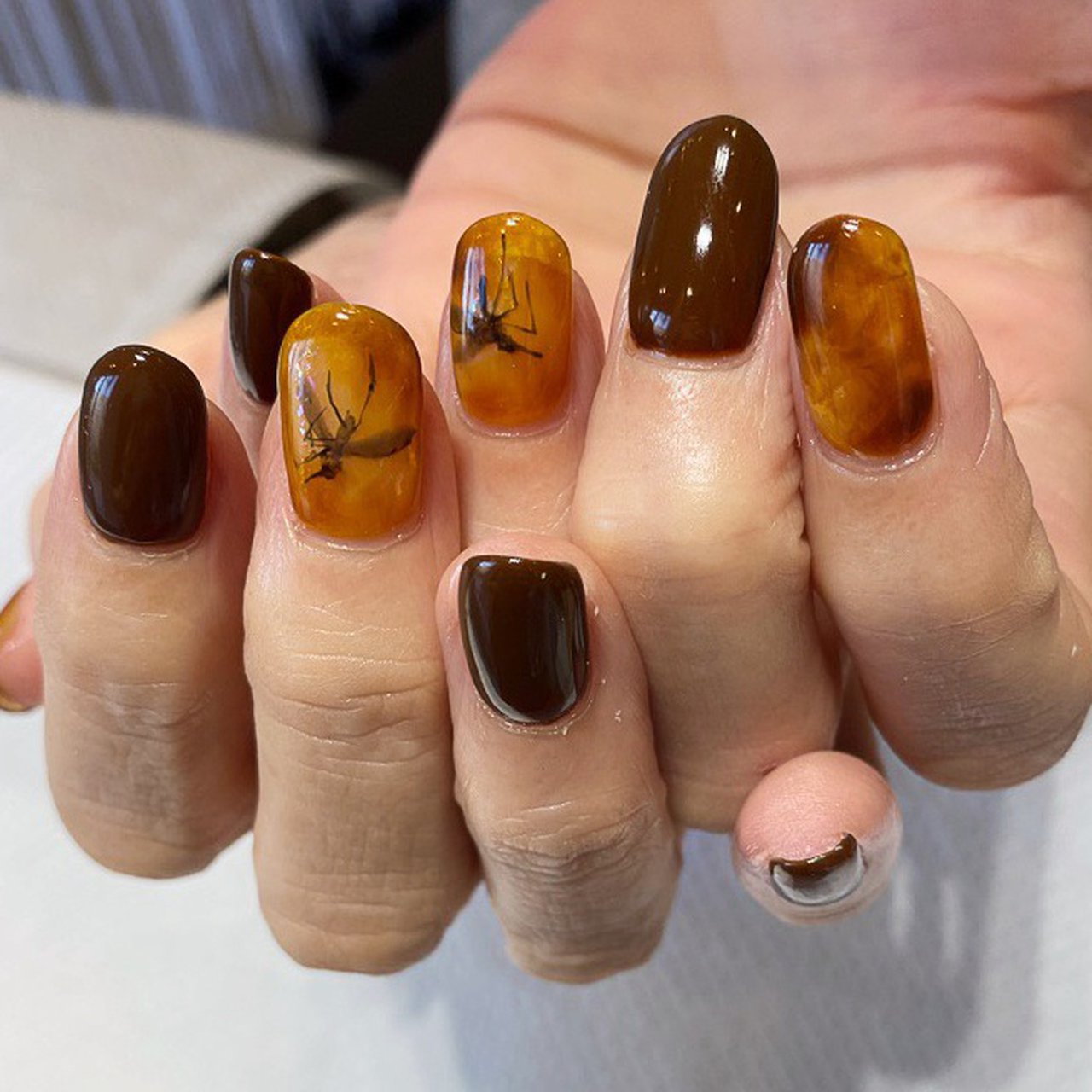 あくび Ranko プチプラで飴色 琥珀 トゥルンとしたブラウン系ネイル Powered By Line